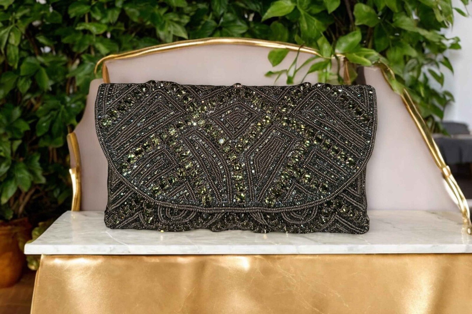 Luxury evening clutch bag with rhinestones and magnetic closure. Can be carried as a clutch or shoulder bag. Perfect for formal or casual occasions, with enough space for small essentials. Ideal for parties, weddings, and special events, or as a thoughtful gift.
