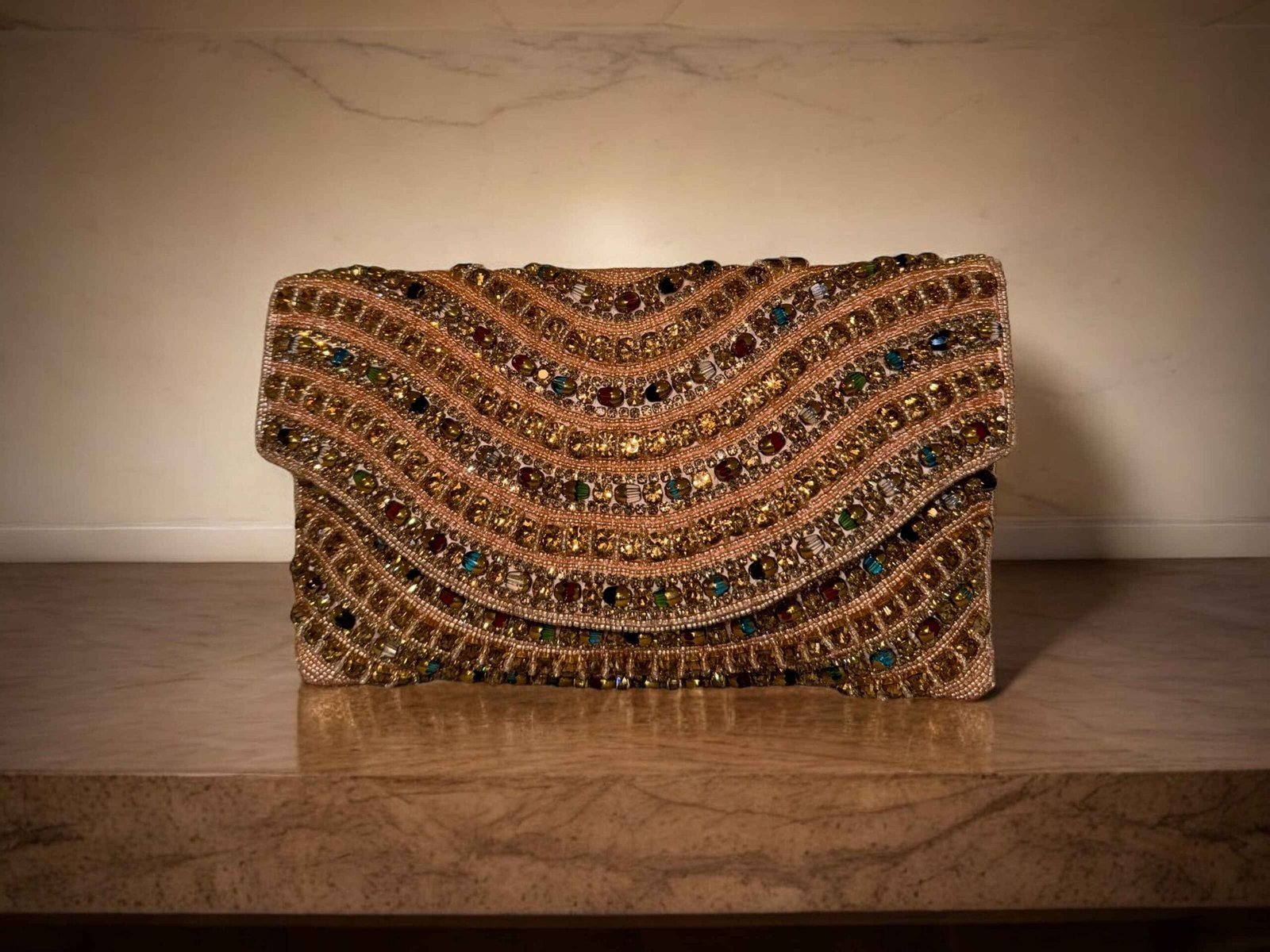 Luxury evening clutch bag with rhinestones and magnetic closure. Can be carried as a clutch or shoulder bag. Perfect for formal or casual occasions, with enough space for small essentials. Ideal for parties, weddings, and special events, or as a thoughtful gift.